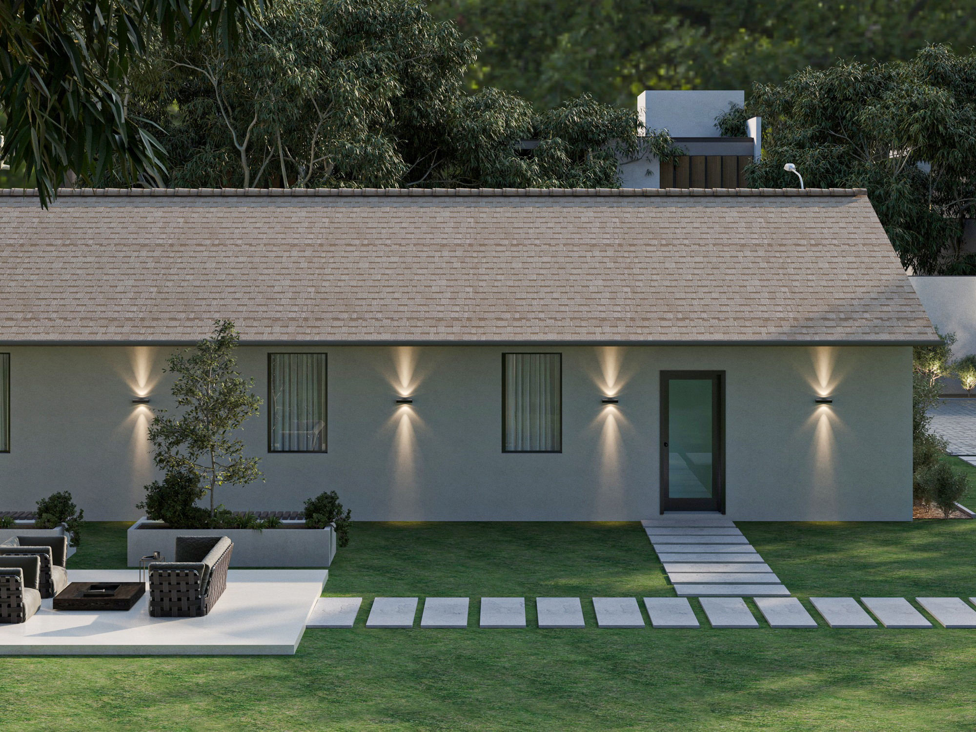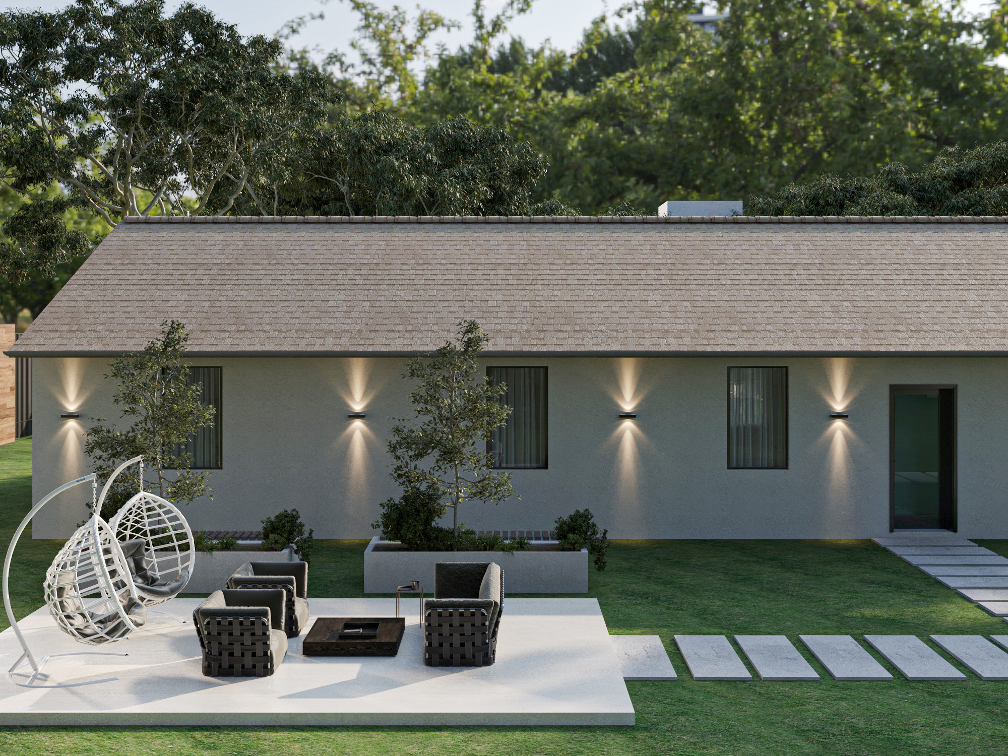 Type 7 is a cozy modular home that offers a well-designed total area of 128.10 m², ideal for small families seeking a blend of style and practicality